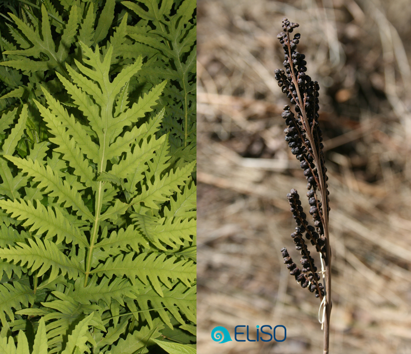 Cette fougère se distingue facilement par ses frondes grossièrement divisées, lui donnant l’air de sortir tout droit de l’âge des dinosaures! Ses frondes fertiles (avec les sores ou « graines ») sont brunes et persistent même en hiver.